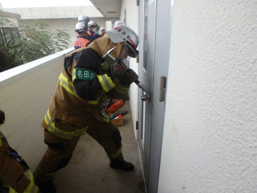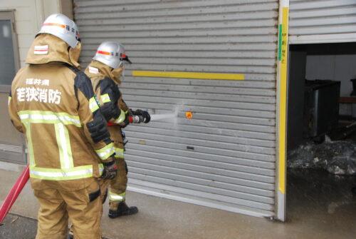 令和7年9月18日(木)、19日(金)の2日間で、大阪道頓堀ビル火災を踏まえた耐火建物における進入、退出路の確保、消防技術の向上を図ることを目的とした訓練を福井県高浜町の旧高浜町役場庁舎にて実施しました。