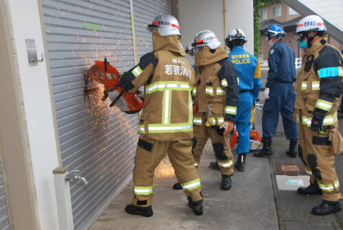 また、19日(金)には小浜警察署の職員も合同訓練に参加し、お互いに技術の確認や機器取扱い等に関するコミュニケーションを取り合い、充実した訓練となりました。