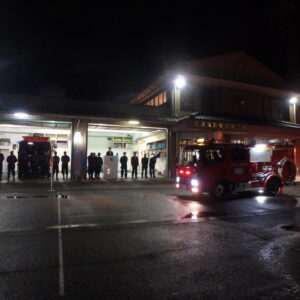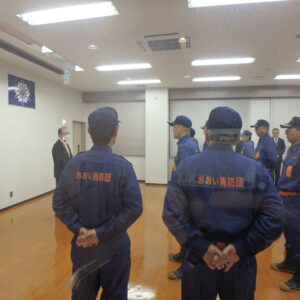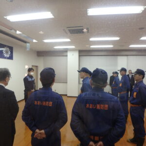 実施に伴い、令和7年12月21日(日)に若狭消防署大飯分署で出発式を行いました。おおい消防団団長からおおい町長へ開始報告を行い、おおい消防団の車両13台が出発し、警戒パトロールにあたりました。