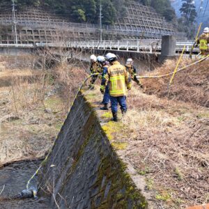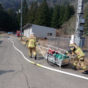令和8年3月24日(火)、おおい町名田庄井上名田庄総合木炭生産組合敷地および林道において林野火災対応訓練を実施しました。