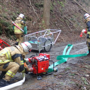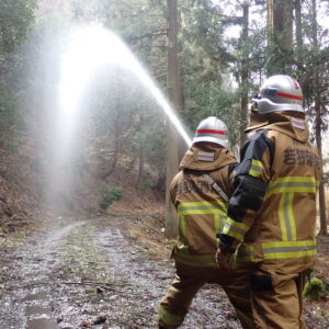 名田庄分署管内においても管轄内の大半を山林が占めており、令和7年5月に林野火災対応訓練を実施しましたが、継続的に訓練を実施する必要があるため、実災害を想定した林野における資器材(機関)の運用、ホース延長、消火方法を実践し、林野火災防ぎょ技術の向上を図ることを目的としています。
