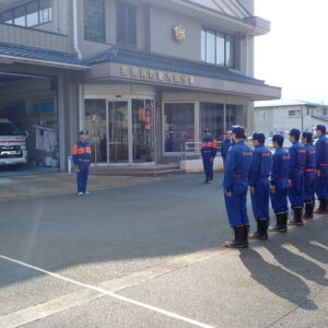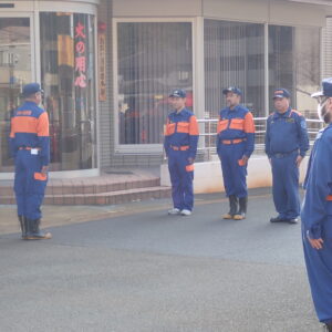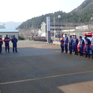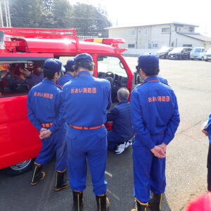 時岡消防団長から「消防車は、貴重な財源でもある税金を使い導入させていただいた車両です。いつまでも大切に使っていただき、有事の際はすぐに活動できるように資器材の確認をよろしくお願いします。」という訓示がありました。