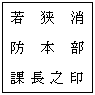 | 課長印 | 方1.8 | ![]() | てん書 | 課長名をもってする文書 | 総務課長 | 1 |