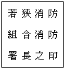| 消防団長印 | 方1.8 | ![]() | てん書 | 消防団長名をもってする文書 | 署長 | 1 |