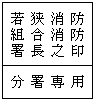 | 消防分署印 | 方2.1 | ![]() | れい書 | 消防分署名をもってする文書 | 分署長 | 4 |