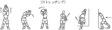 | 本運動で主に使った部位の筋肉、関節を伸ばす。また、同部位のマッサージをする。 |