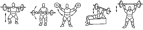 | アイソトニック(等張性)トレーニング | 筋力 | バーベル、ダンベル等を使用して一定の負荷を与える。自己の体重を利用して負荷を与える方法もある。 | ![]() |