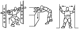 | アイソメトリック(等尺性)トレーニング | 筋力 | 柱、壁等動かないものを利用して全力で押したり引いたりする。自己の身体を利用して行うこともできる。(静的トレーニング) | ||
