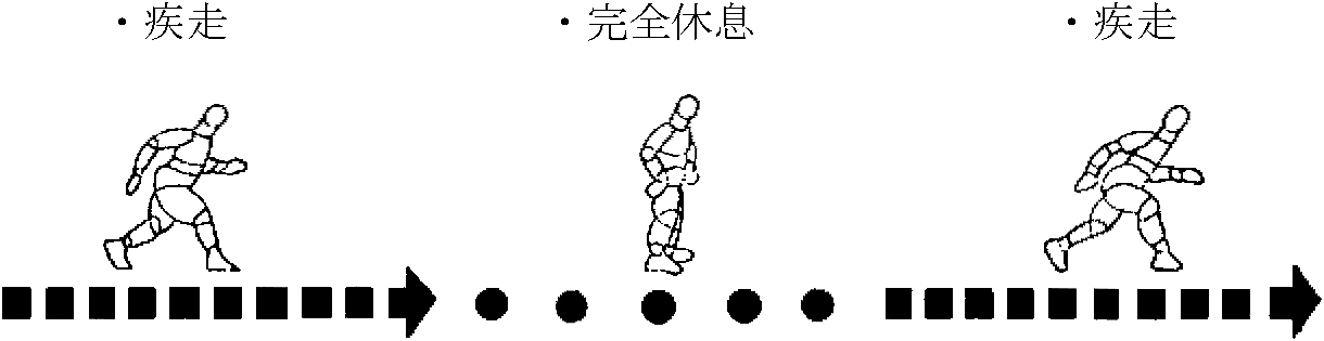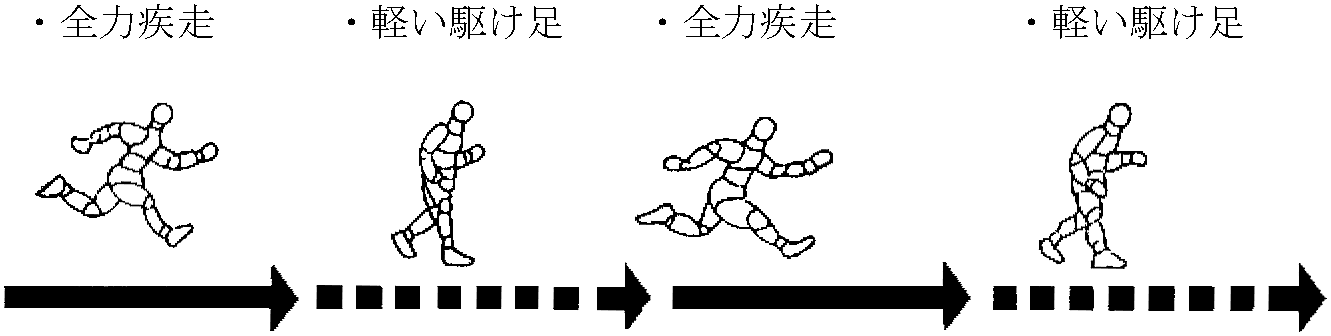 | レペテション(反復)トレーニング | 同上 | 一定の運動の後、完全休息をとり、再び元の運動を繰り返す。 | ![]() |