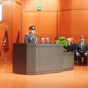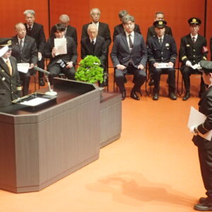 第2次行事では渡辺若狭町長はじめ、ご来賓の皆様よりご挨拶をいただきました。その後、各消防団員が表彰を受け無事出初式を終えることができました。